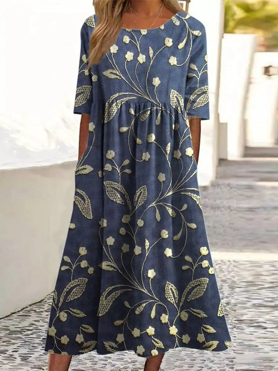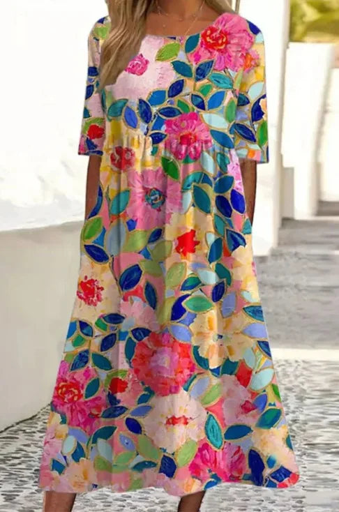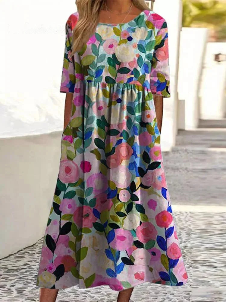 This elegant floral midi dress combines comfort and effortless style.