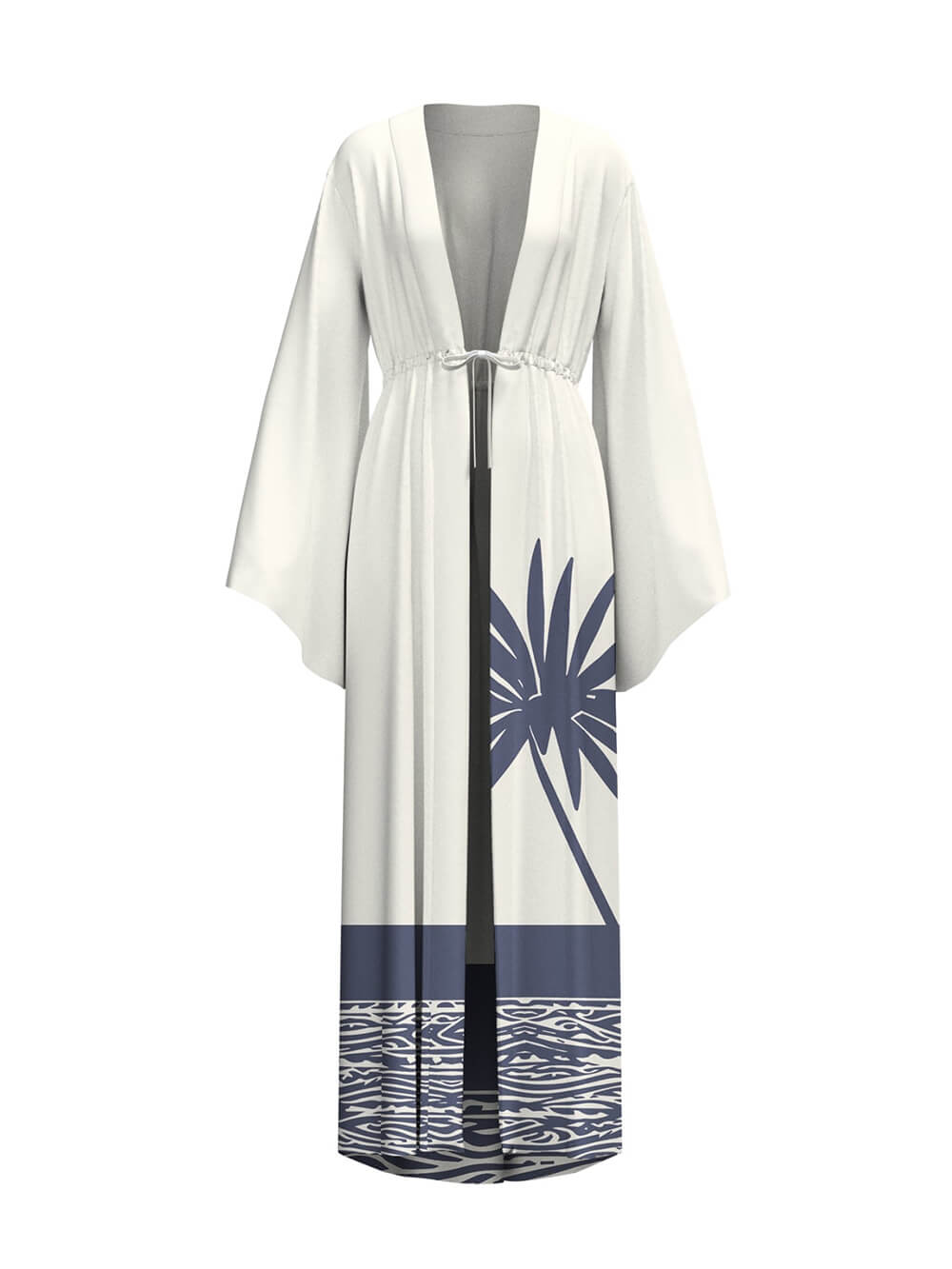 Sexy Kimono Palm Tree Print Beach Cover-Up