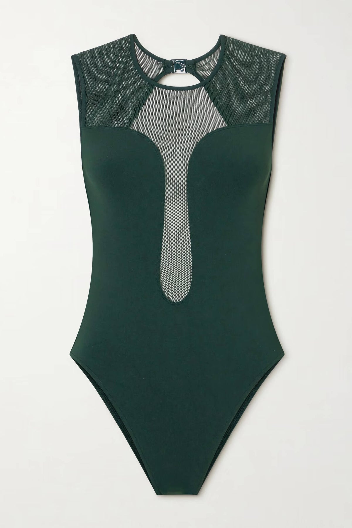 Unique Backless Mesh-Trim One-Piece Swimsuit