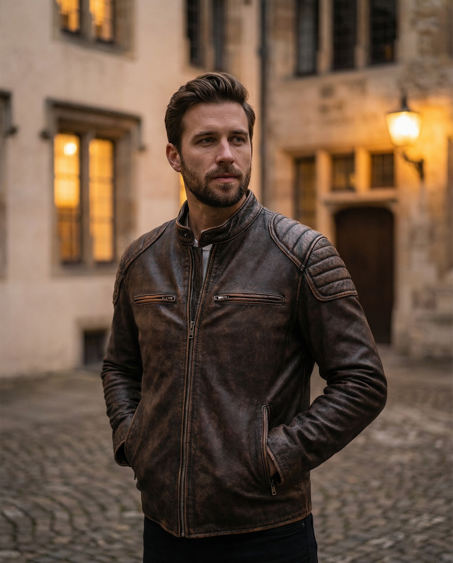 Built from full-grain leather with a naturally broken-in feel, this jacket is made for miles, not moments. Clean lines, reinforced shoulders, and a soft lining balance grit with comfort for everyday wear. It carries warmth on cool mornings and character with every season. For the kind of man who wears things in, not out.