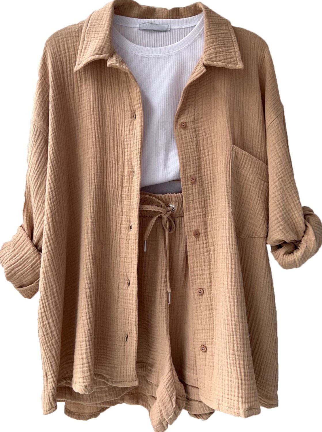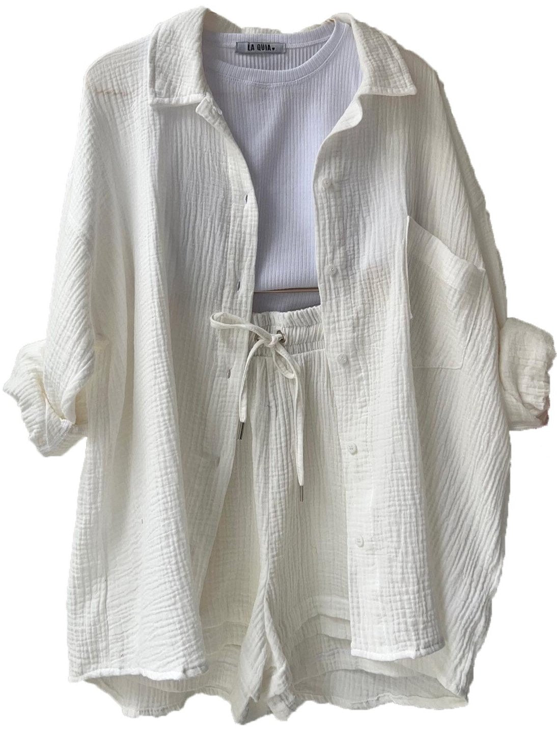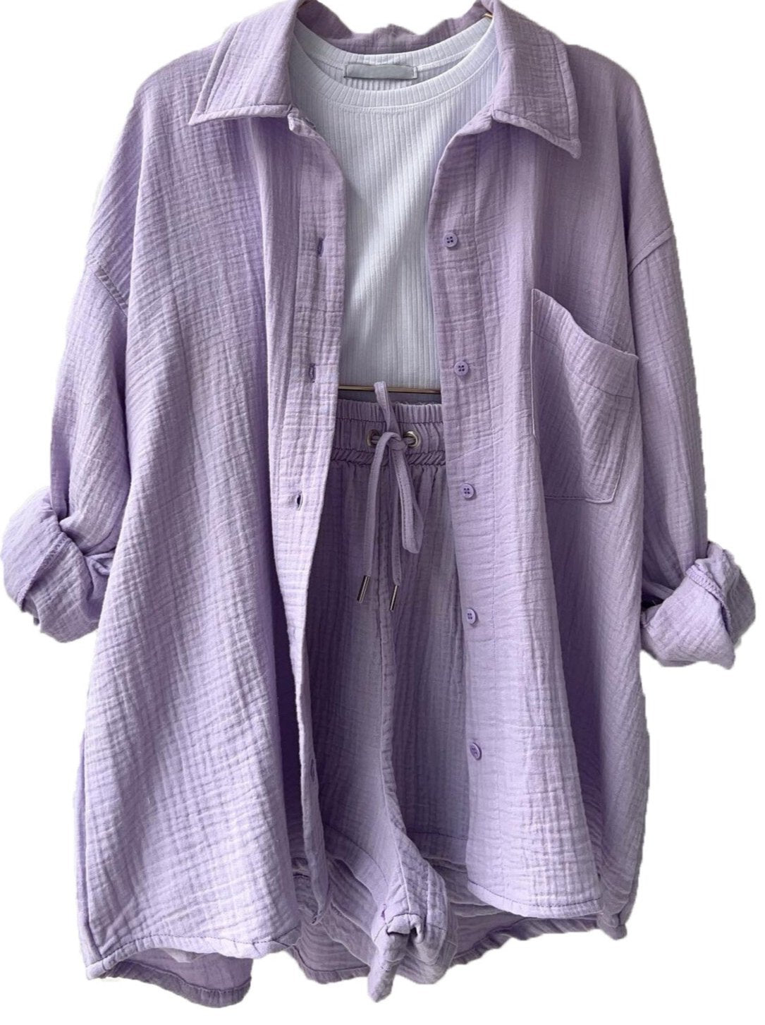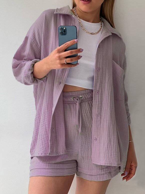 Unwind in unparalleled comfort while staying effortlessly stylish with our Sussie - Cotton Lounge Set for women! Crafted from high-quality cotton, this casual loungewear ensemble is designed to offer you a cool and relaxed feeling all day long. The top features a flattering lapel collar, adding a touch of elegance to the ensemble, while the shorts exude a playful charm, perfect for this season!