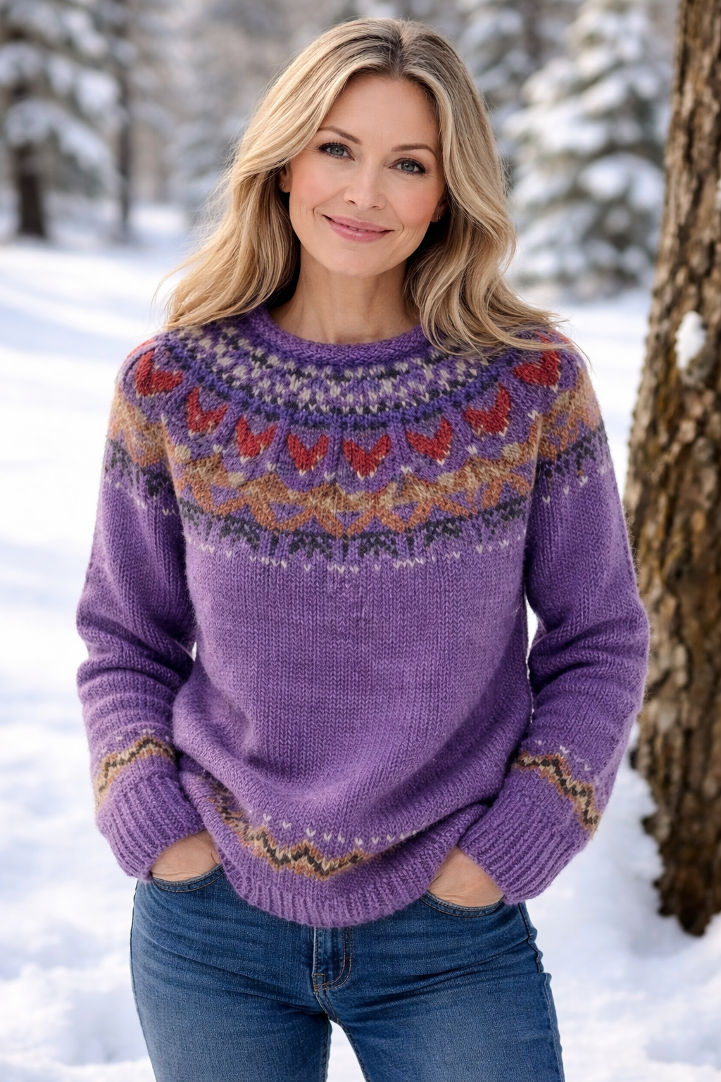 Mira is the sweater for those who love a warm, traditional style with a touch of color and coziness.