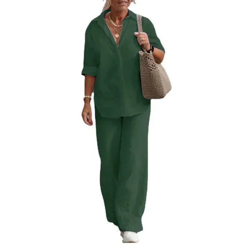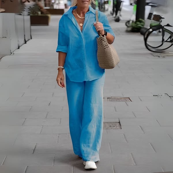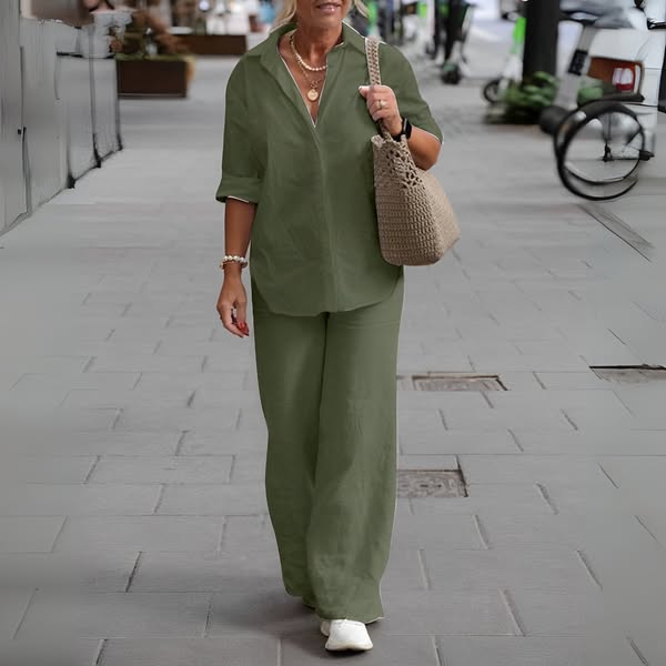 Effortless Elegance – This matching set blends refined tailoring with soft, breathable fabric to keep you looking chic and feeling comfortable from morning to night.